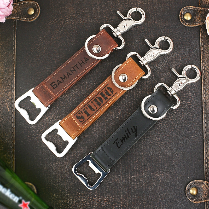 | Product Name | Custom Beer Bottle Opener Key Chain | Material | Leatherette + Zinc alloy |