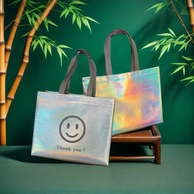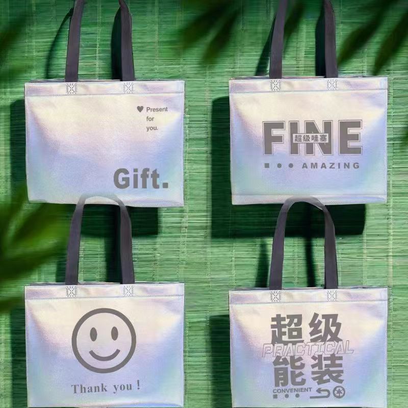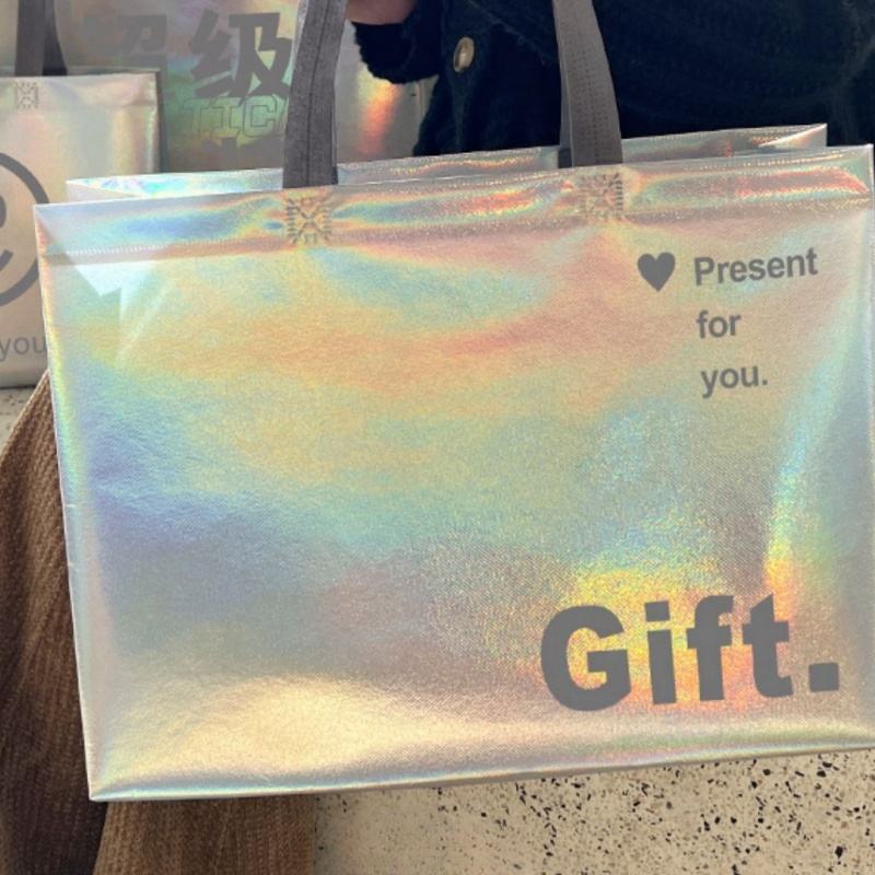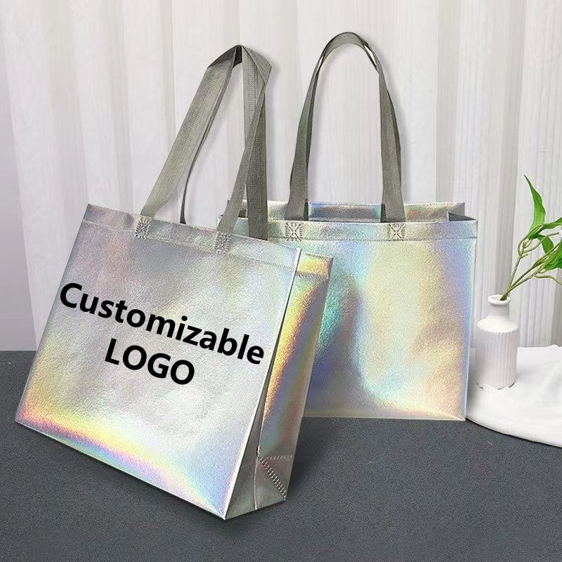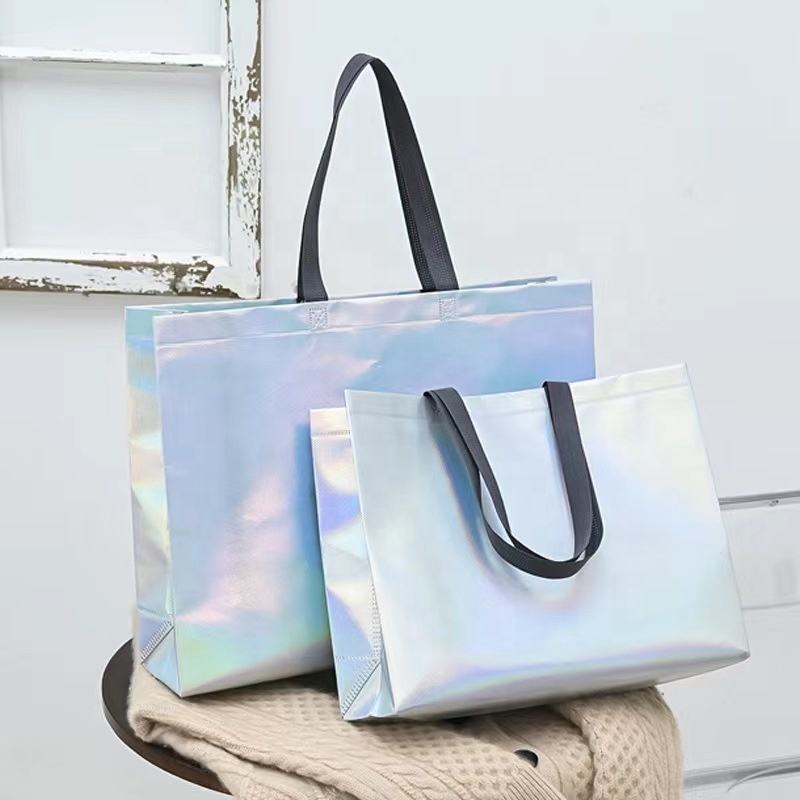 High Quality New Silver Metal Laser Non Woven Shopping Bag Reusable Eco Friendly Bag With Logo