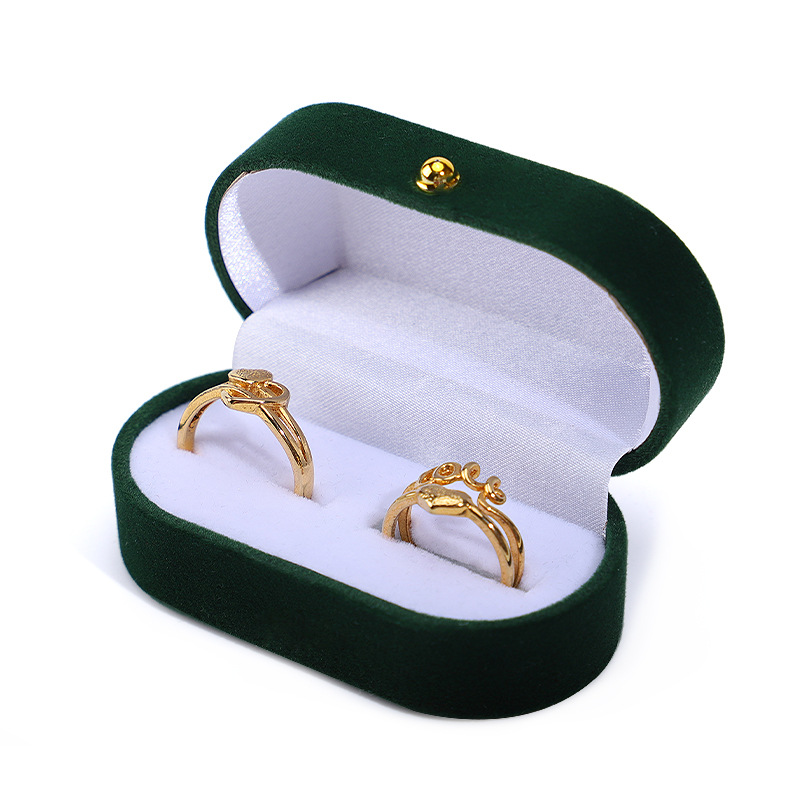 Low MOQ Wedding Ring Boxes – Green Velvet Double Jewelry Box for Couple Rings
