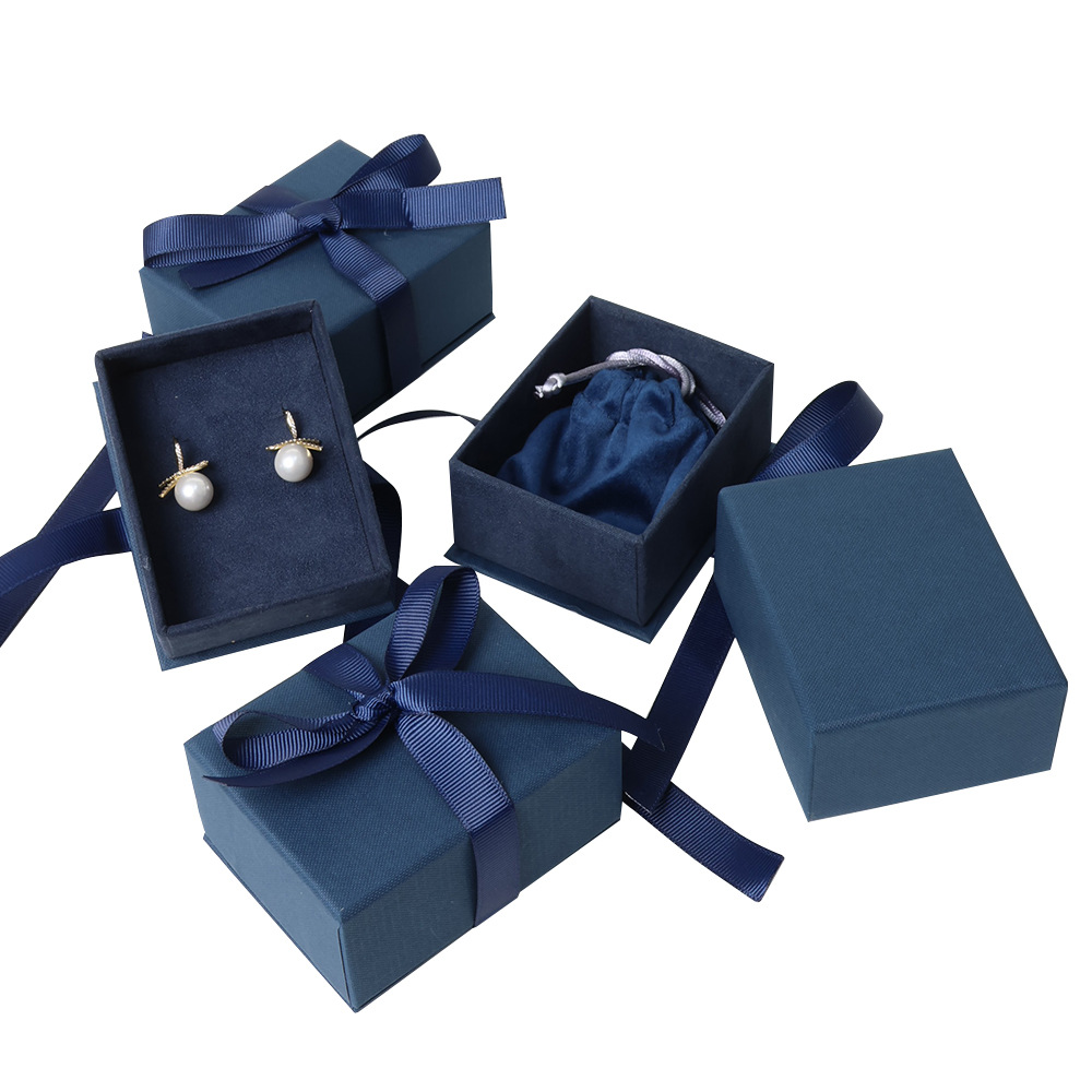 Luxury Dark Blue Jewelry Box – Elegant Earring Gift Packaging