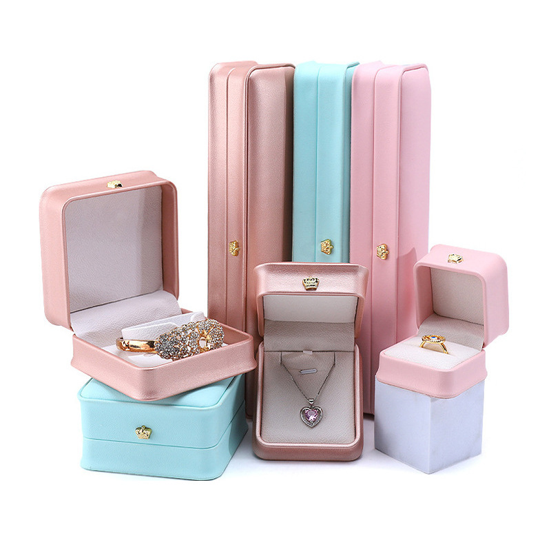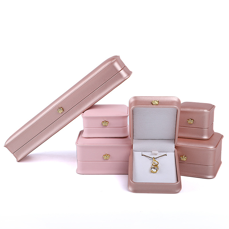 Wholesale Custom Logo Pink Leather Jewelry Box – Crown Design for Rings/Necklaces
