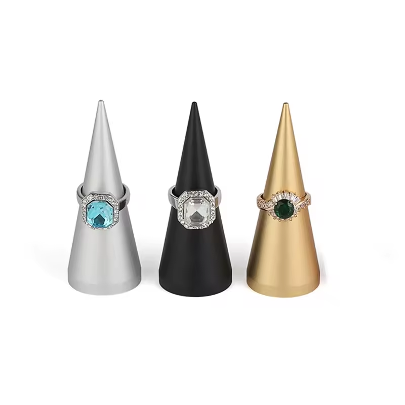 Discover our elegant aluminum ring holder, available in gold, matt black, and silver. Sized at 30*50mm or 30*80mm, each holder is securely packaged in an EPE bag, inner box, and carton.